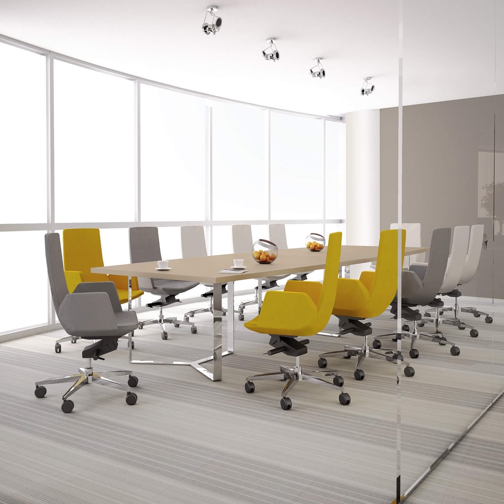 Заседателна маса Narbutas Nova, 1400 x 1640 х 740 mm, правоъгълен плот, ПДЧ 25 mm, перленосив меламин, бял метал, крак тип U