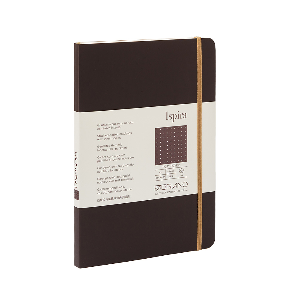 Fabriano Тетрадка Ispira, A5, на точки, шита, мека корица, 96 листа, кафява