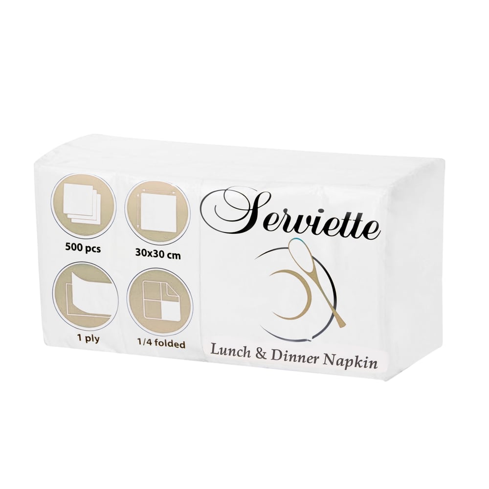 Салфетки, целулоза, двупластови, 1/8 сгъвка, 33 х 33 cm, с бордюр, бели, 150 броя