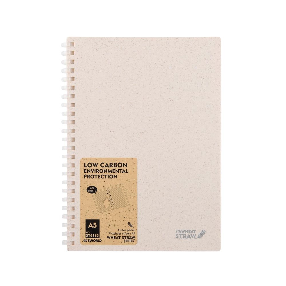 Sworld Тетрадка Wheat Straw, А5, със спирала, 60 листа, бяла