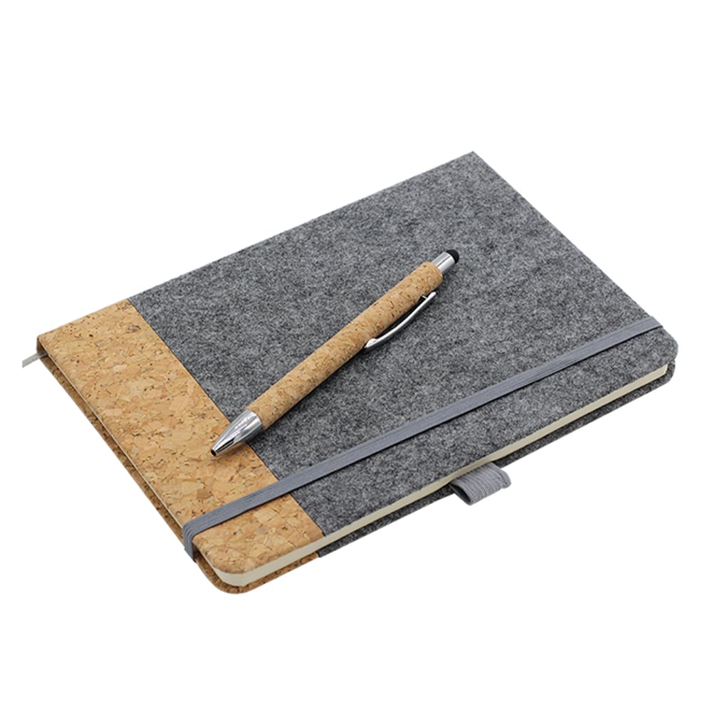 Office 1 Комплект Бележник и химикалка, А5, 80 листа, филц и корк, в кутия