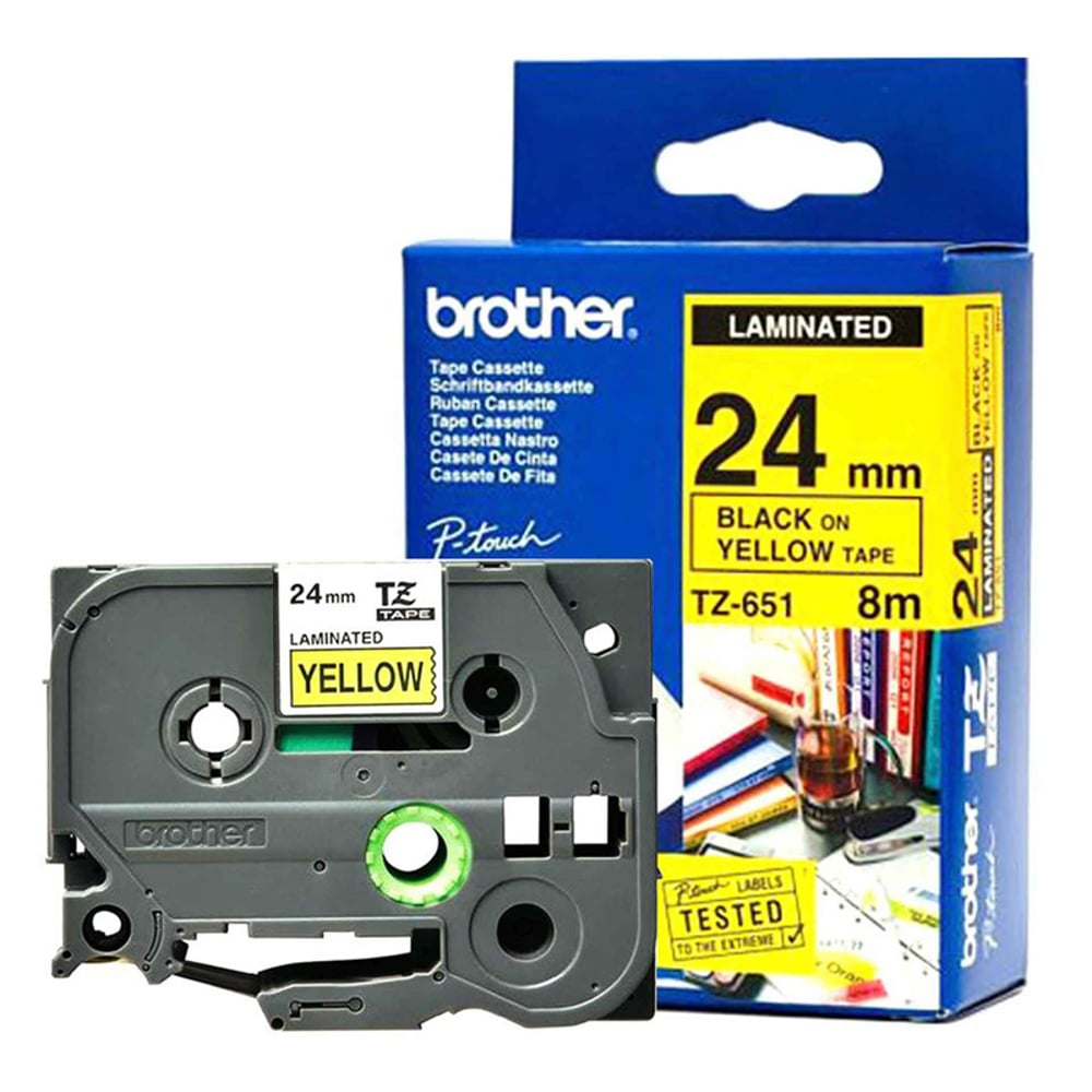 Brother Tape TZEFX651, Flexible ID, black on yellow tape, 24 mm
