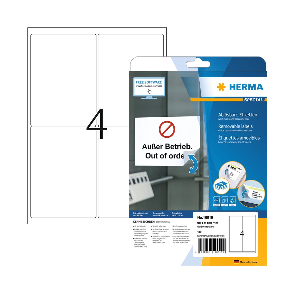 Herma Self-adhesive labels, A4, repositionable, 99.1 x 139 mm, 4 pcs, 25 sheets