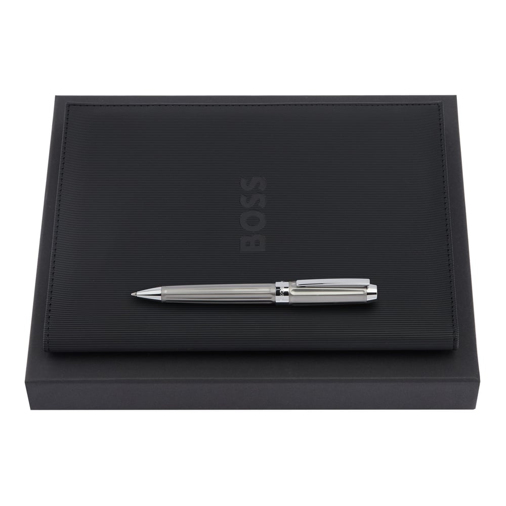 Hugo Boss Set: Formation Line folder A5, black, and Chrome pen, grey