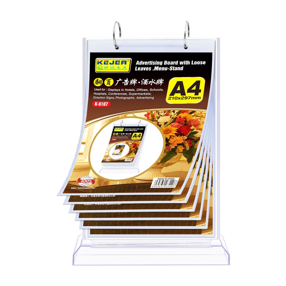 KEJEA Menu holder, with rings, vertical, A4, transparent