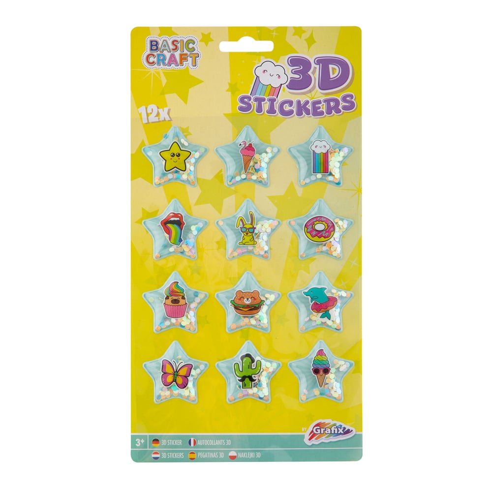 Moxy 3D Stickers with glitter, 12 pcs, assorted, pack of 72