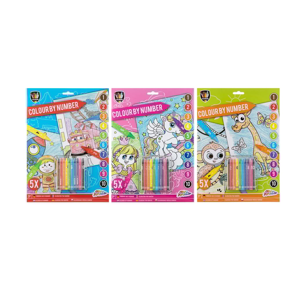 Moxy Painting by numbers kit, A4, 5 sheets, with pastels included, 24 pieces
