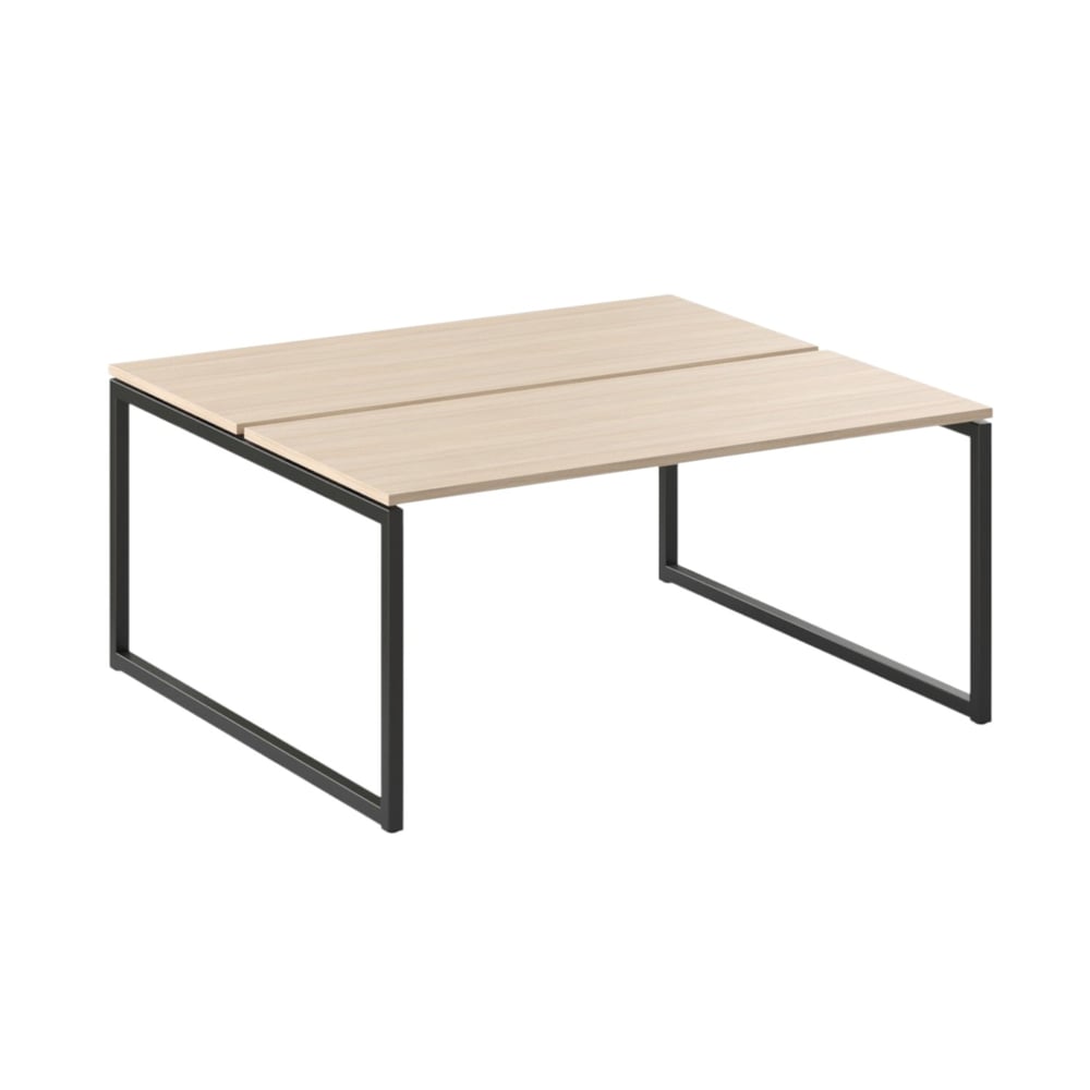 Desks Narbutas Nova O, double workstation, 1200 x 1440 x 740 mm, melamine bleached oak, black metal, O-leg type