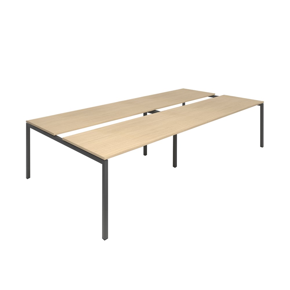 Conference table Narbutas Nova, 3200 x 1640 x 740 mm, rectangular top, chipboard 25 mm, bleached oak melamine, dark grey metal, U-shaped leg