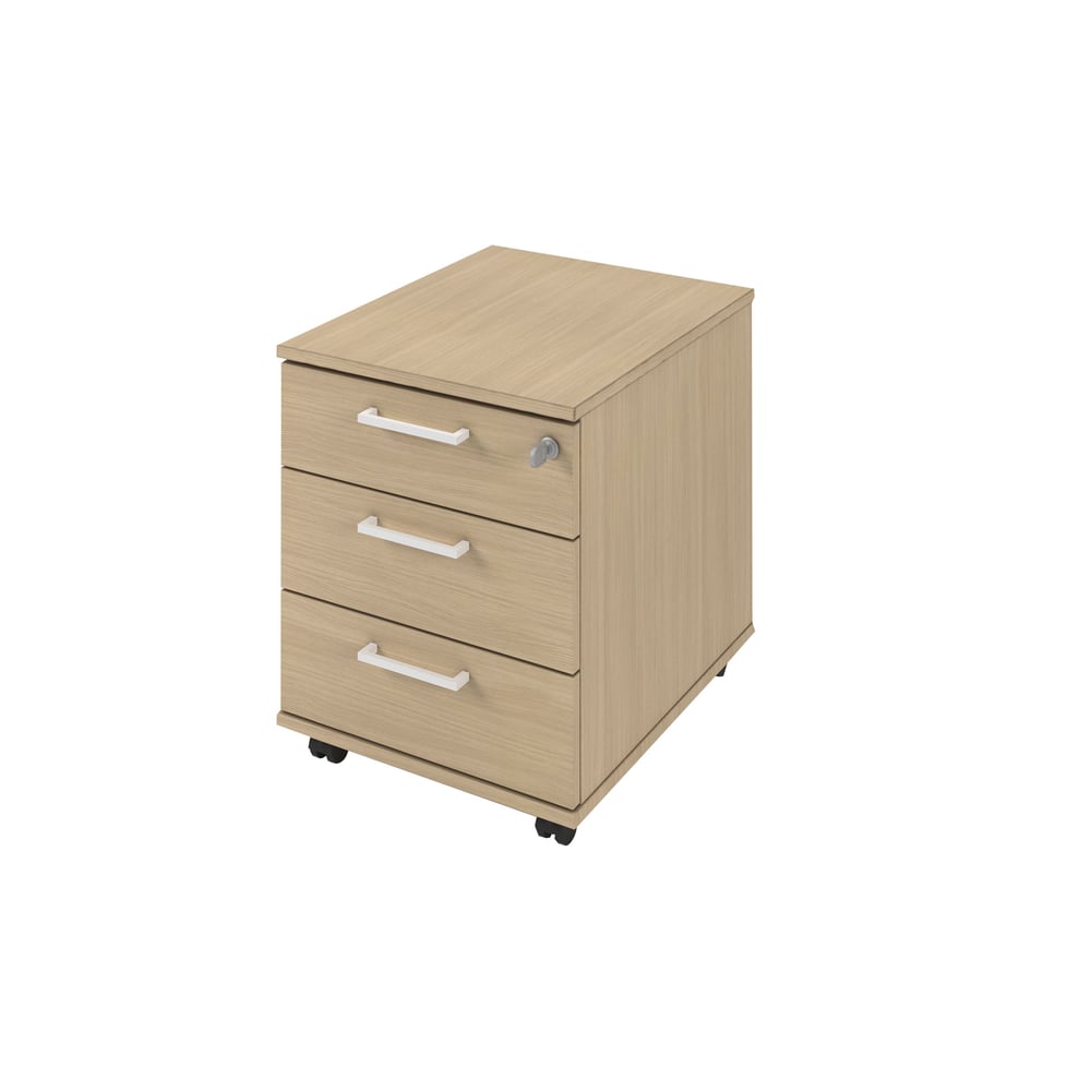 Desk pedestal Narbutas Optima, 415 x 500 x 510 mm, with castors, particleboard, melamine bleached oak, white rectangular handle