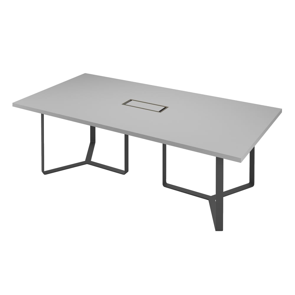 Meeting table Narbutas Plana, 4200 x 1200 x 750 mm, rectangular top, 36 mm particleboard, pearl grey melamine, white metal, cable box dark grey metal