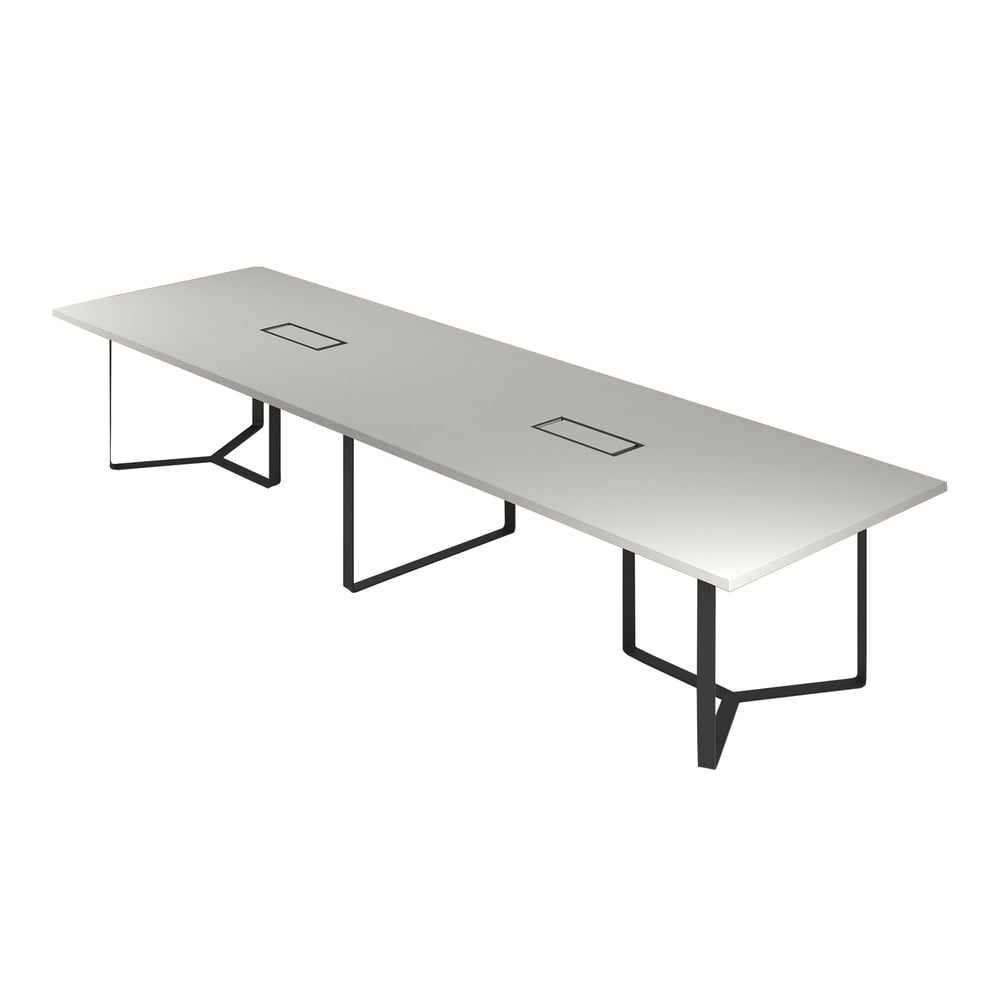 Conference table Narbutas Plana, 4200 x 1200 x 750 mm, rectangular top, chipboard 36 mm, white melamine, grey metal, white metal cable box