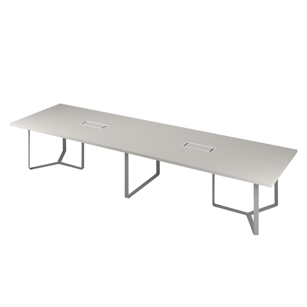 Meeting table Narbutas Plana, 4200 x 1200 x 750 mm, rectangular top, 36 mm particleboard, pearl grey melamine, grey metal, cable box white metal
