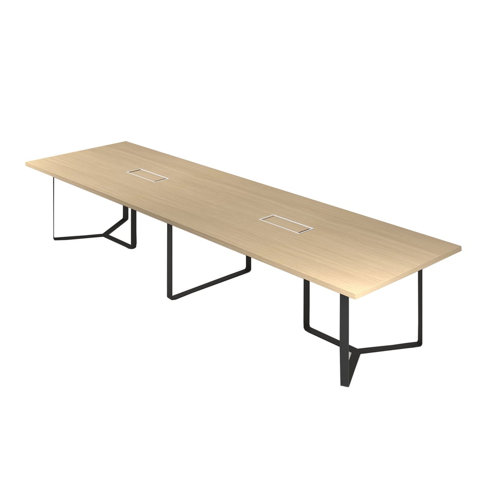 Conference table Narbutas Plana, 2400 x 1200 x 750 mm, rectangular top, chipboard 36 mm, bleached oak melamine, grey metal, dark grey metal cable box