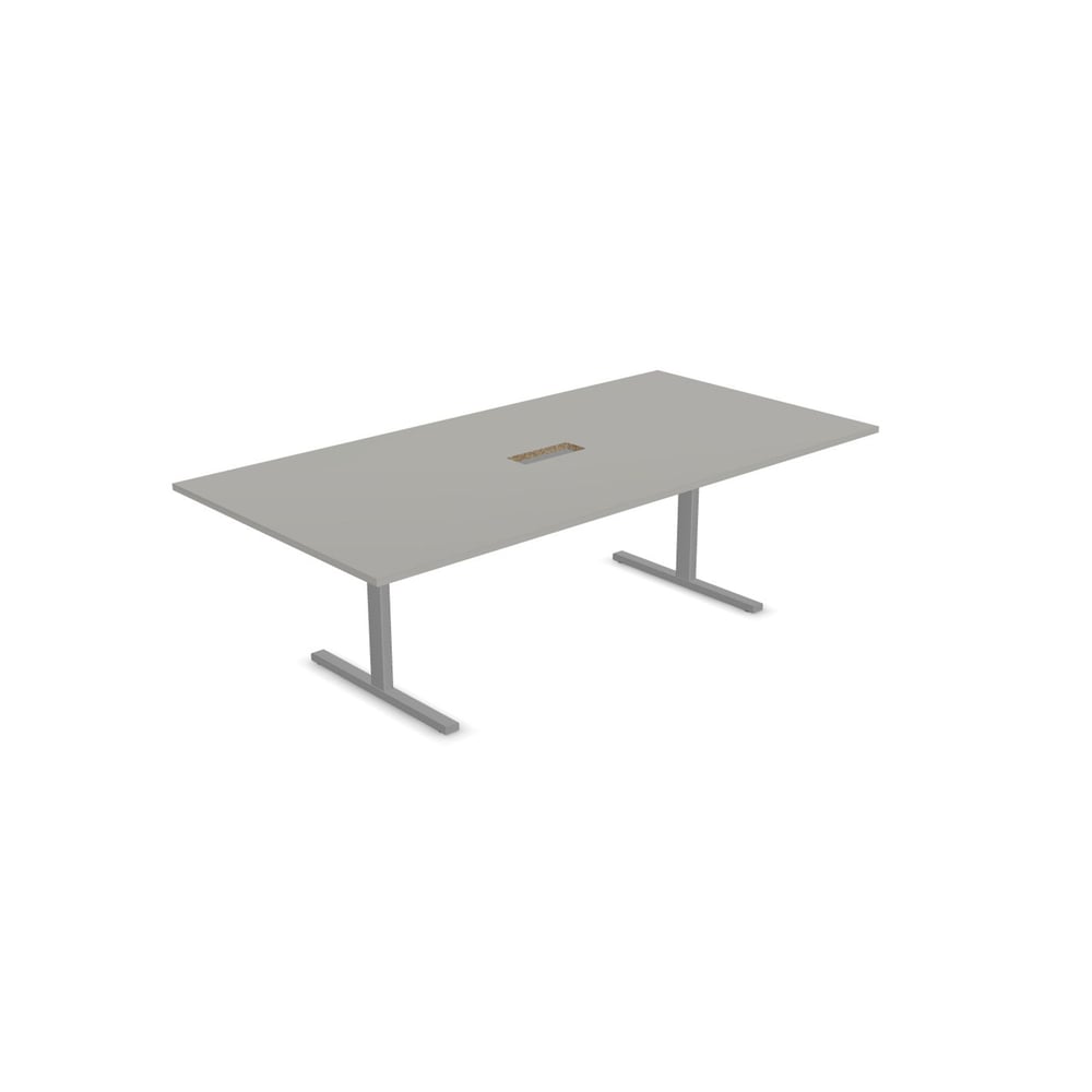 Conference table Narbutas T-Easy, 2400 x 1200 x 740 mm, rectangular top, 25 mm particleboard, pearl grey melamine, grey metal, leg type I