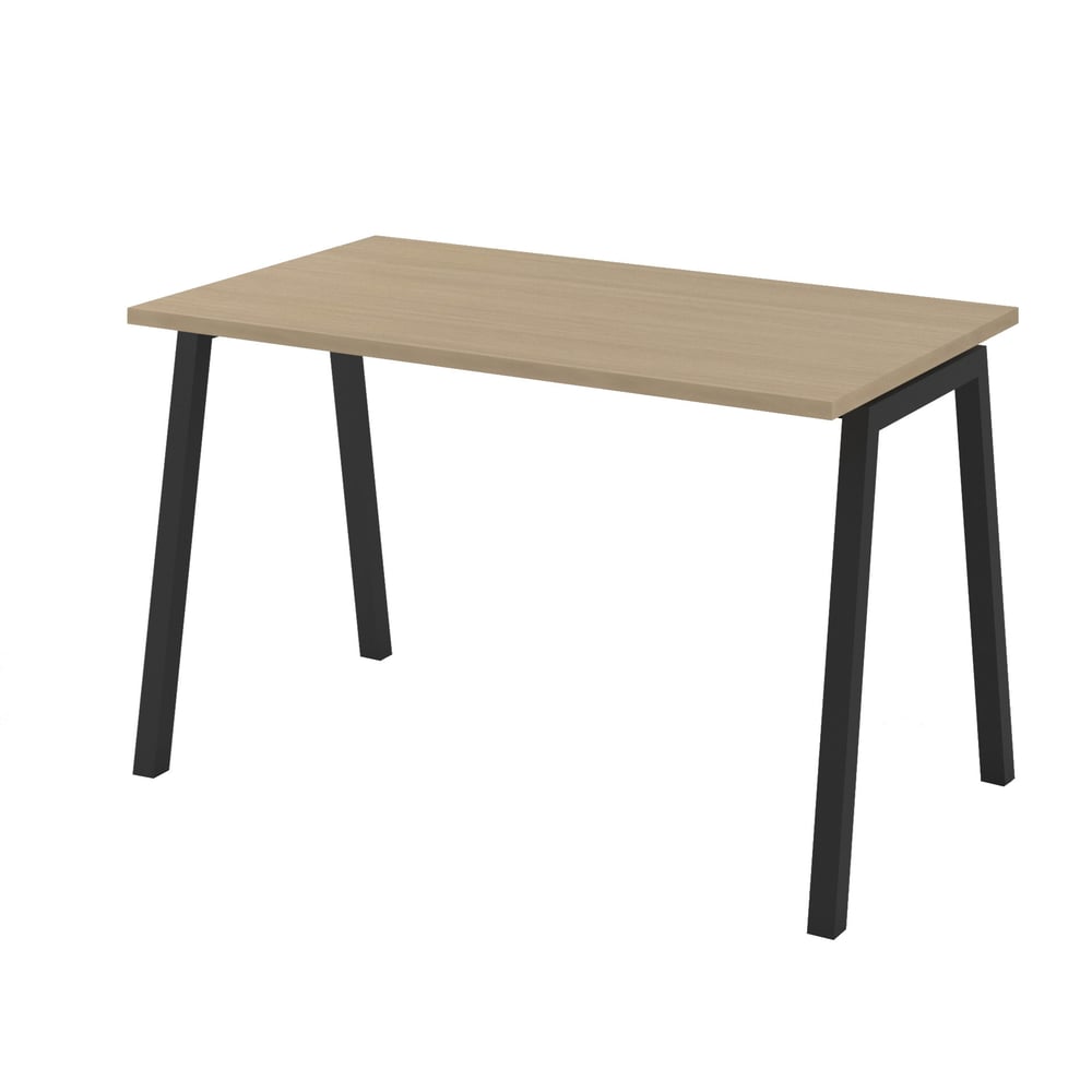 Desk Narbutas Nova A, 1200 x 700 x 740 mm, melamine bleached oak, black metal, A-leg
