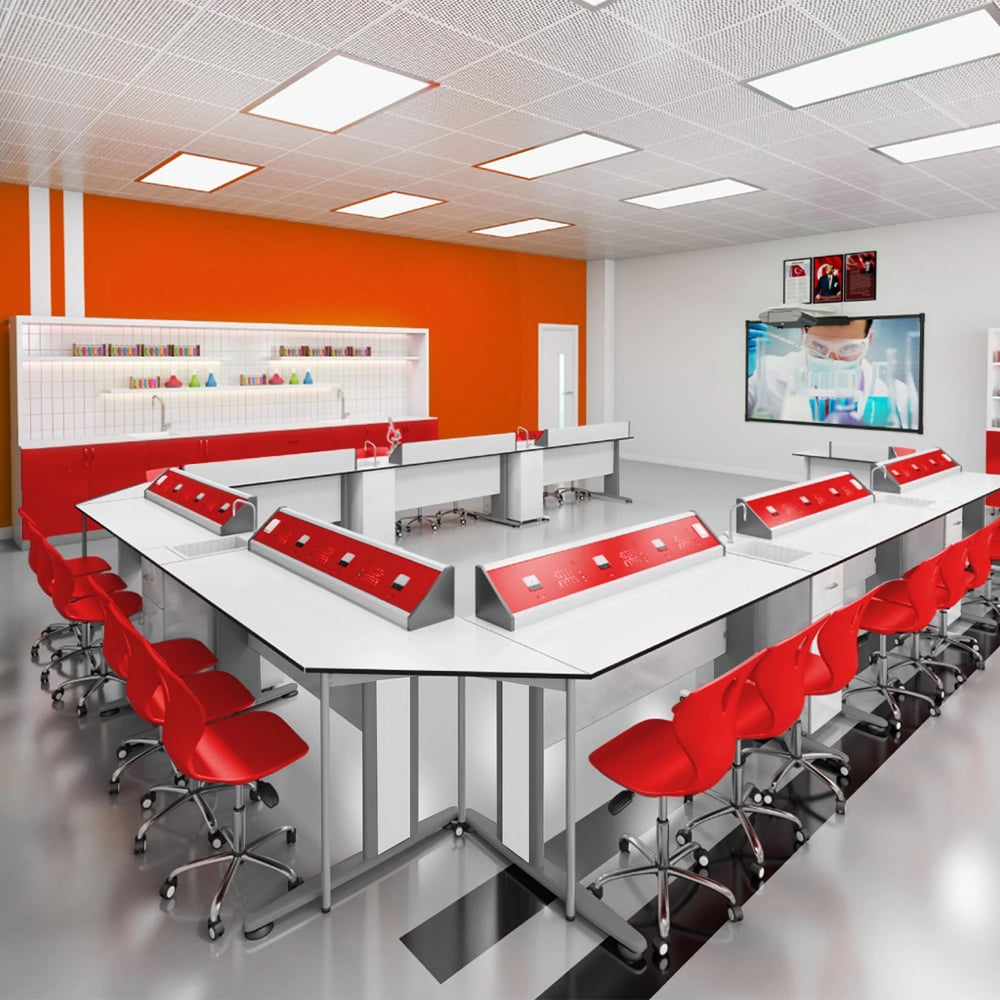 RFG Chemistry and biology classroom Flat, over 7th grade, for 24 students, white-red