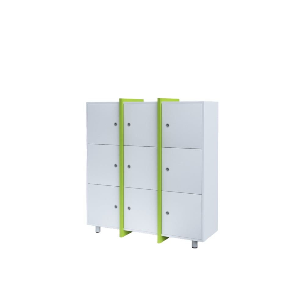 RFG Cabinet Etto, with 9 compartments, 1260 x 400 x 1310 mm, white and green