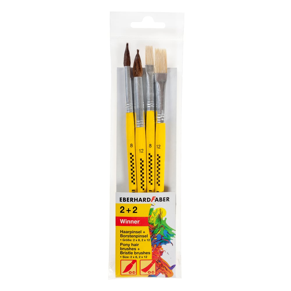 Eberhard Faber Paintbrush Set, flat No. 8 and 12 with bristle, round No. 8 and 12 with natural hair, blister pack