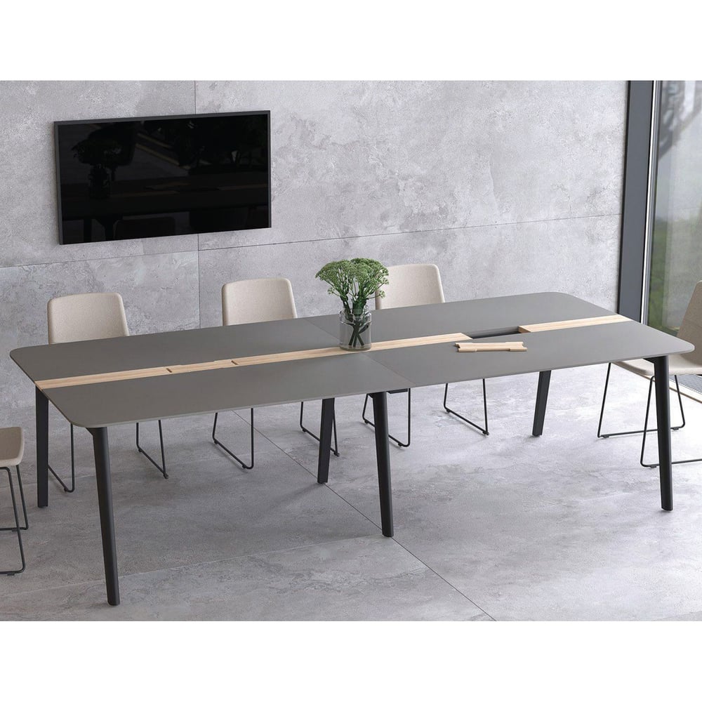 Conference table Narbutas Nova Wood, 2400 x 1200 x 740 mm, rectangular top, MDF 26 mm, black HPL top, black metal, wooden legs