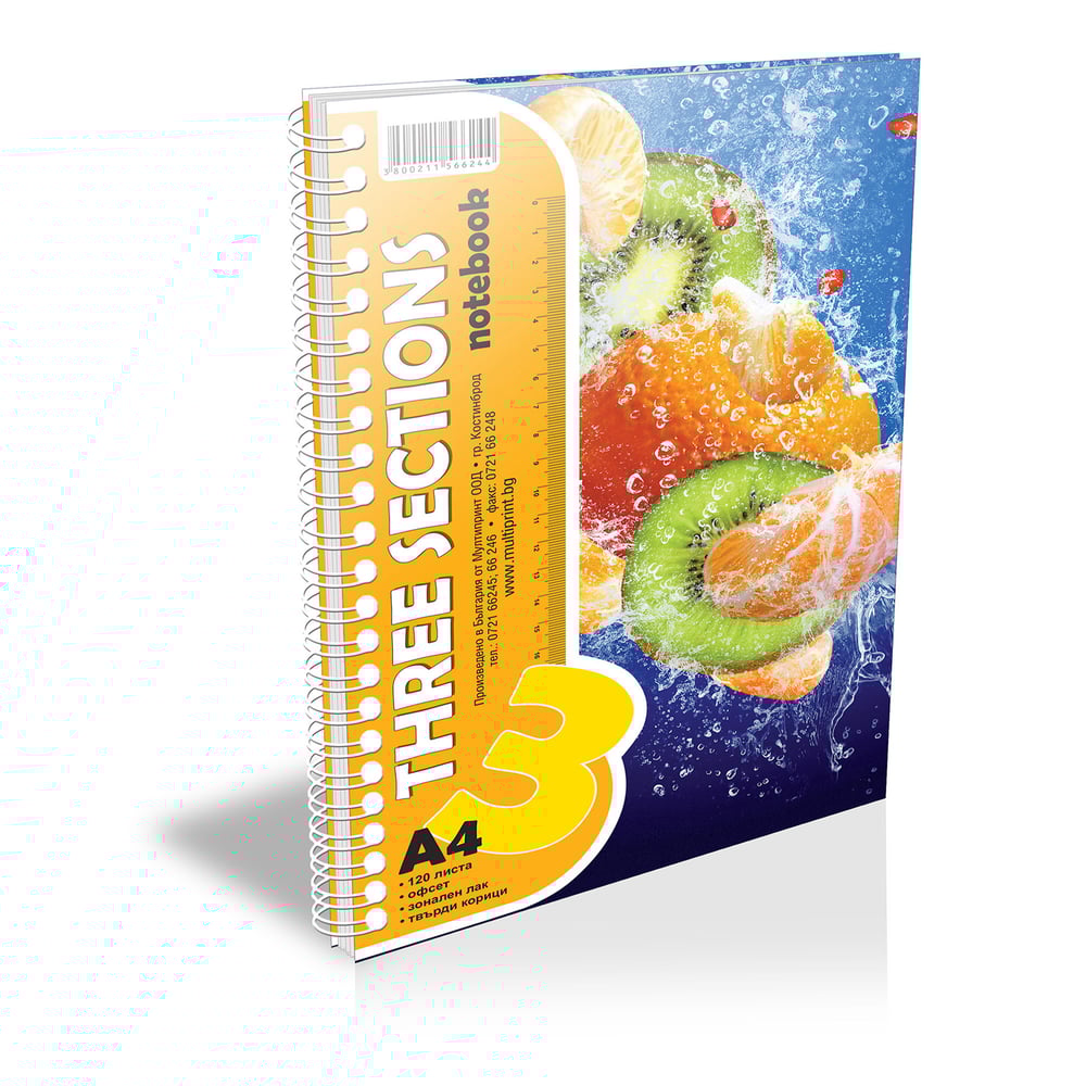 Notebook, A4, wide ruled, 3 subjects, offset paper, spiral, hard cover, 120 sheets