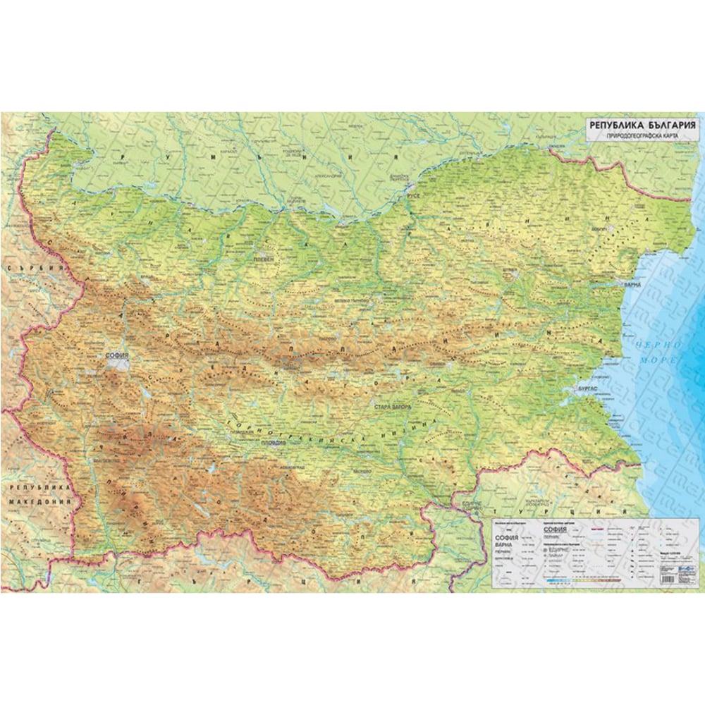 Wall Map of Bulgaria, physical-geographical, 200 x 140 cm, laminated