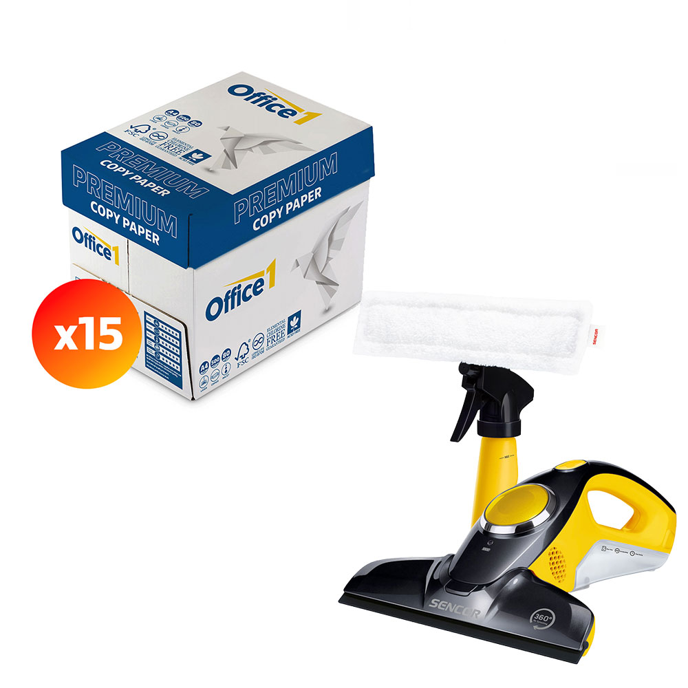 Office 1 Copy paper Premium, A4, 80 g/m2, 500 sheets, 15 cartons, with Window cleaner Sencor