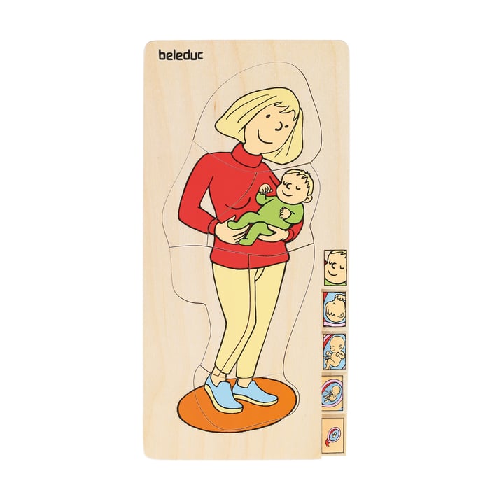 It contains 5 puzzles at different levels, tracking stages of a woman's pregnancy.