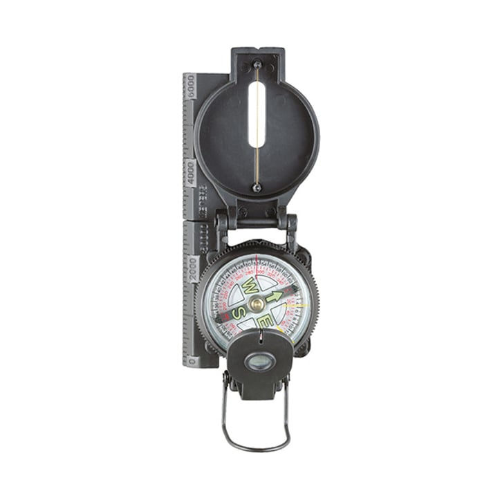 A robust compass with an inch and a 360 degree scale measurement.