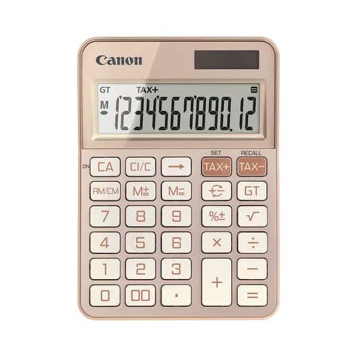 The calculator offers memory for a common sum in a thin body with raised and tilted display for easy desktop use.