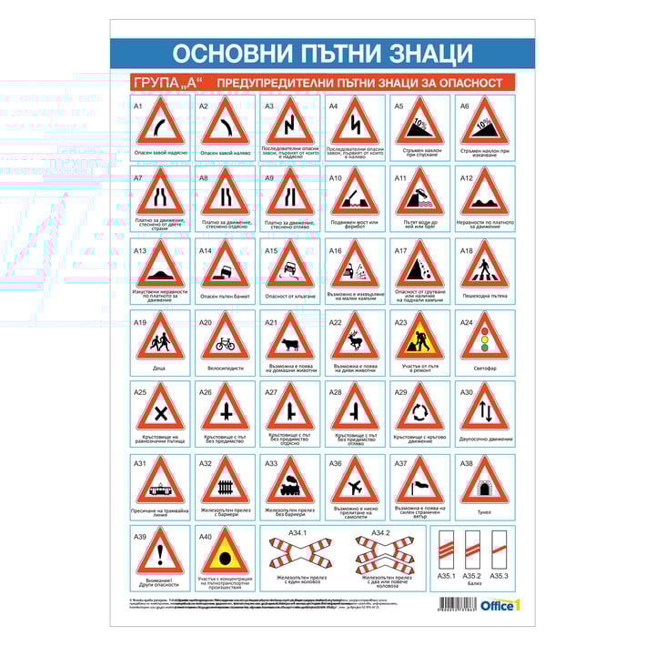 Office 1 School Poster “Traffic Safety – Basic Road Signs”, without rails, double-sided