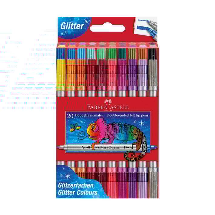 Faber-Castel's double markers are set of 20 colors and add shine and effect to each creative project. Each flumaster has two different tips, which provides more opportunities for painting, decorations and accents.