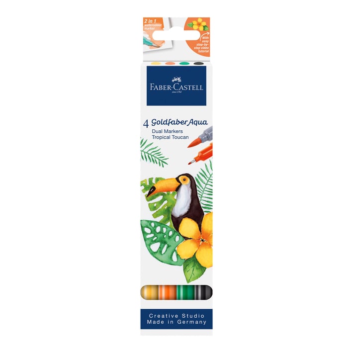 Goldfaber Aqua Dual markers from Faber-Castel are the ideal choice for all those who want to immerse themselves in the relaxing world of watercolor painting. The kit includes inspiring tropical colors that give freshness, vitality and artistic spirit to each work.