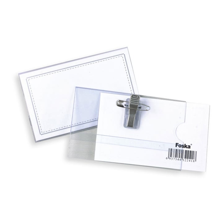 Foska Badge, with pin and clip, 90 x 57 mm, 50 pcs