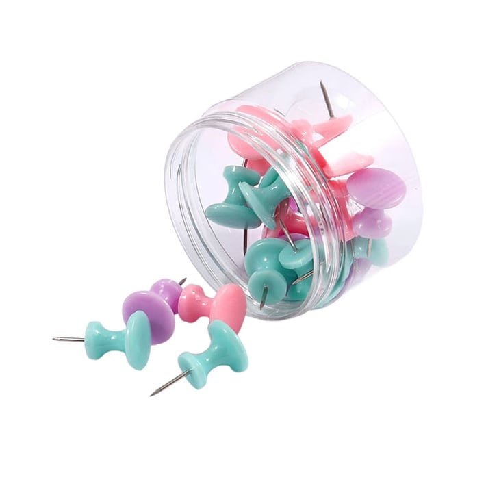 Colour pins with round head for fastening notes, paper documents, posters or important information on cork boards, ad boards, wall panels and other surfaces.Ideal for both office and school or home, these pins combine bright design with robust construction, making them comfortable and easy for everyday use.The robust metal tip provides stable and secure fastening without damaging the surfaces.Excellent choice for office employees, teachers, students and families who want to organize their information visually and effectively.