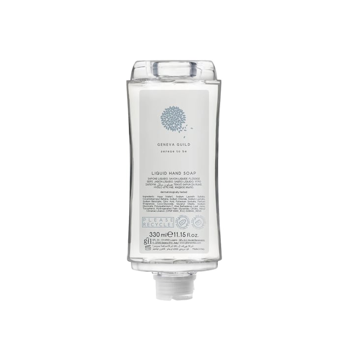Geneva Guild liquid hand soap with light formula and aloe vera extract that gently cleans the skin.
