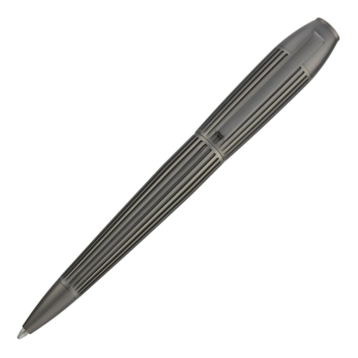 Exquisite pen that combines strength and elegance with deep embossed pintripe motif and modern matte coating in gunmetal color. Precise craftsmanship and fine details give it both valuable and unobtrusive character, and its modern design makes it an impressive tool for writing.