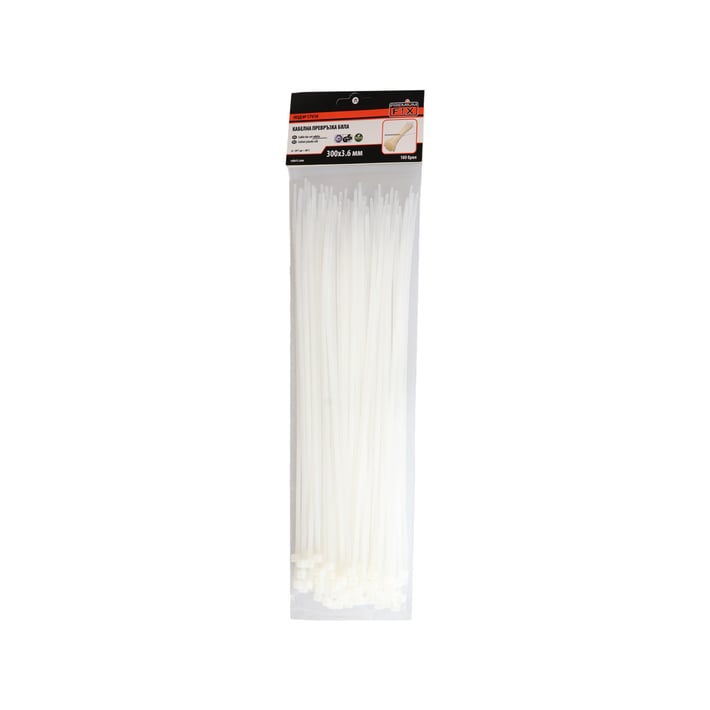 Cable ties, 300 x 3.6 mm, white, 100 count