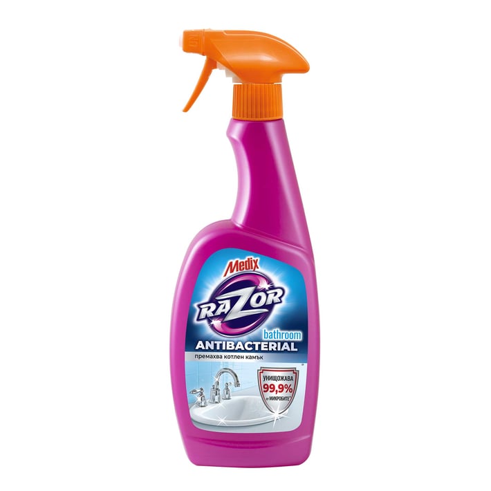 Medix Razor Bathroom is a disinfecting spray with bactericidal activity that destroys 99.9% of Escherichia coli microbes, Pseudomonas aeruginosa, Staphylococcus aureus, Enterococcus hirae.