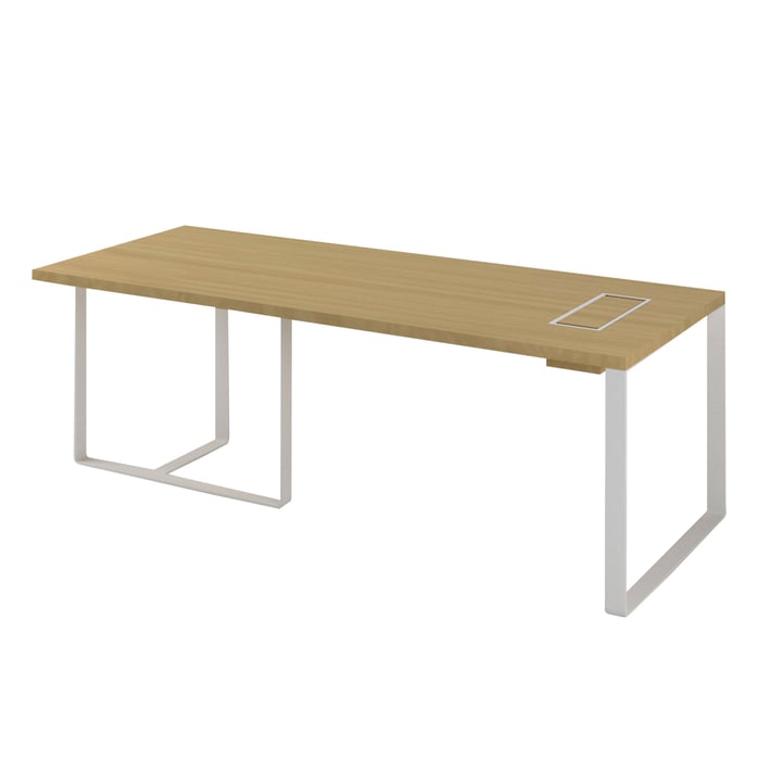 Desk Narbutas Plana, 2200 x 900 x 750 mm, oak veneer, white metal, white metal cable box