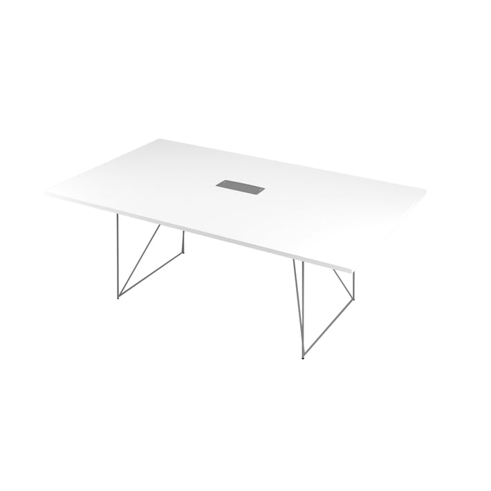 Conference table Narbutas Air, 2200 x 1300 x 740 mm, rectangular top, chipboard 25 mm, white melamine, gray metal