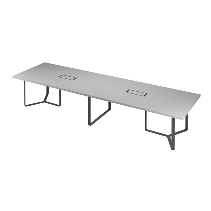 Meeting table Narbutas Plana, 4200 x 1200 x 750 mm, rectangular top, 36 mm particleboard, dark grey melamine, dark grey metal, cable box dark bronze