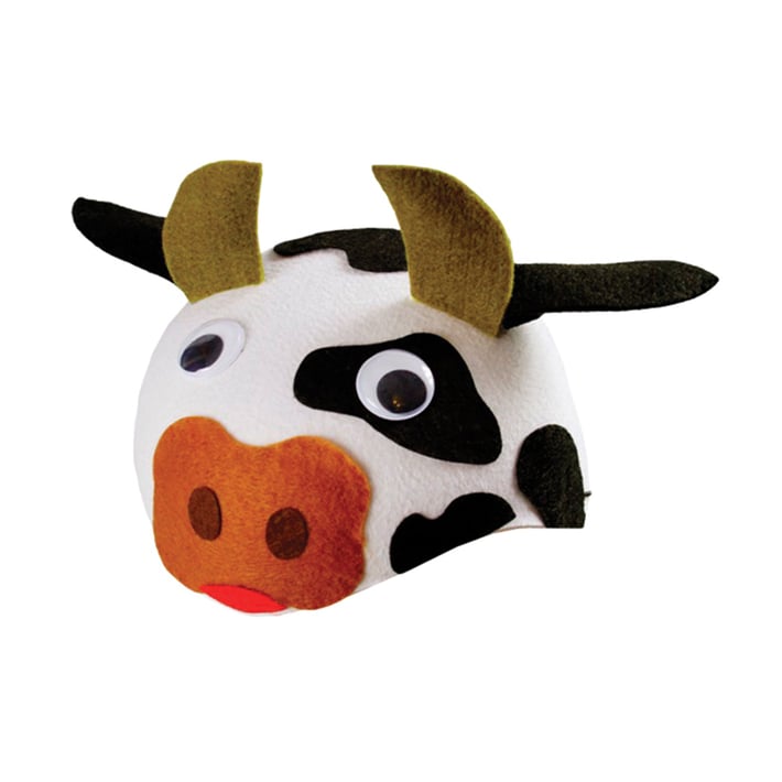 Hat in the form of a cow head suitable for carnival performances and games.