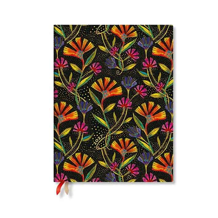 Дизайнът на тази планер ще ви развълнува с артистична визия с красиви цветя. Тук е възпроизведено цвете от картината на Лоръл Бърч "Thank You" в по-съвременен и жизнен модел. Черният фон подчертава живите цветове.