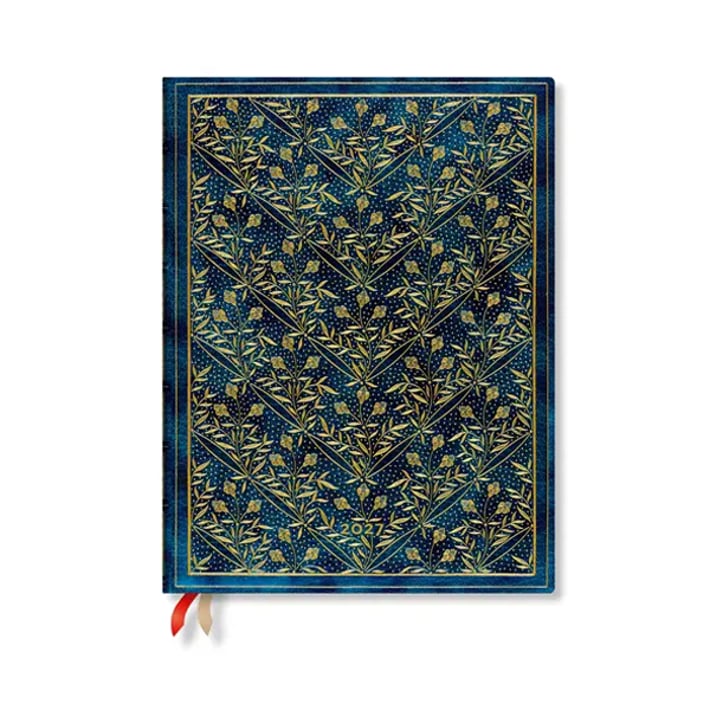 Този планер на Paperblanks пресъздава подвързия от 1893 г. на стихотворенията на Уилям Блейк, изработена от фабрика в Лондон. Блейк е поет, мечтател и ключова фигура в романтичната епоха. Деликатни златни цветя украсяват подвързията на син фон, образувайки уникален модел в стил шеврон. Флоралният модел отразява благоговението на Блейк към природата - той често използва цветята като метафора в своята поезия. Макар работата му да е била до голяма степен неоценена по негово време, сега Блейк се смята за един от най-известните литературни гении на XVIII-ти и XIX-ти век.