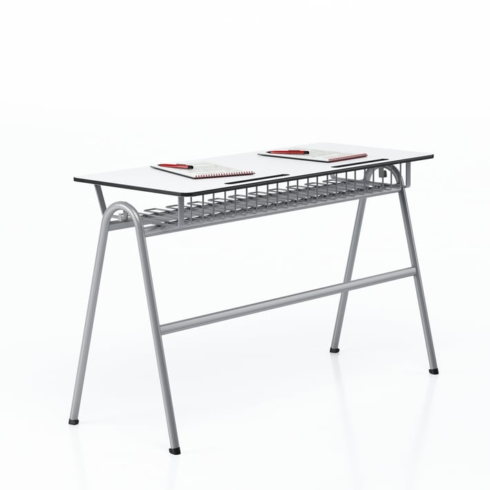 RFG School desk Letme, double, over VIII grade, 1100 x 500 x 750 mm, white top, grey metal