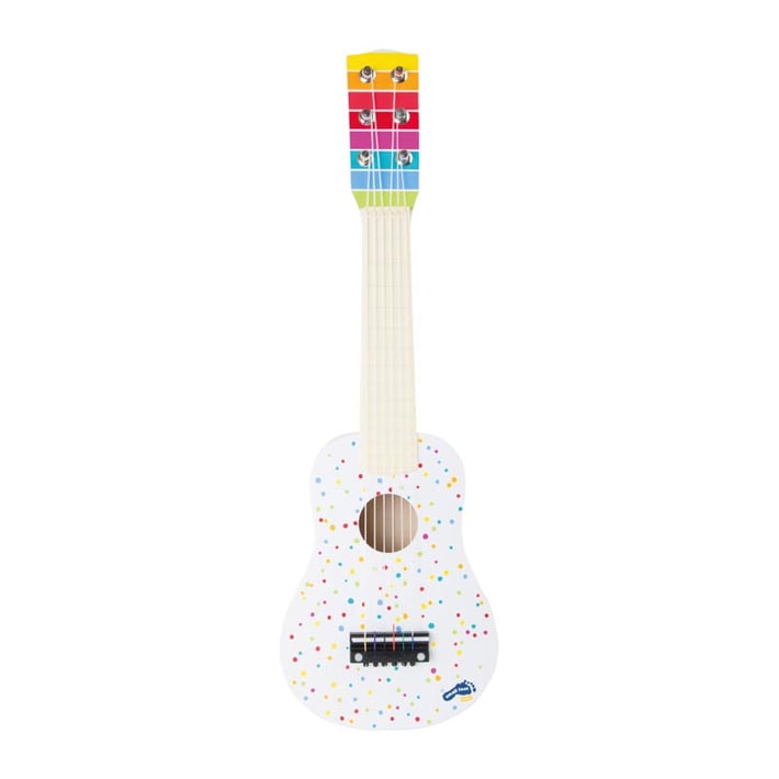 This guitar is an indispensable instrument in every music room! In white with small, colorful accents, this jewel is mandatory for all young music lovers.