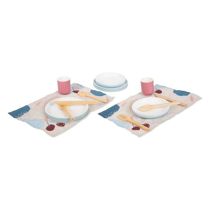 This modern kitchen set for playing including soup dishes, dishes for main dish, cups and healthy utensils made of wood offers exactly what children need for long hours spent in play.