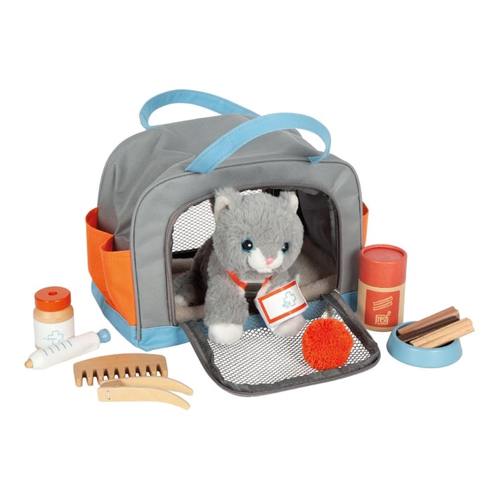 Set Kitten with bag to carry and care accessories of the mark Small Foot is a great choice for children who like to care for animals and to play out different scenes of everyday life. wooden toy offers not only hours of fun, but also opportunities for developing social skills and responsibility. A great combination between playing and learning, which can stimulate the imagination of the young while caring for their new teddy boyfriend.