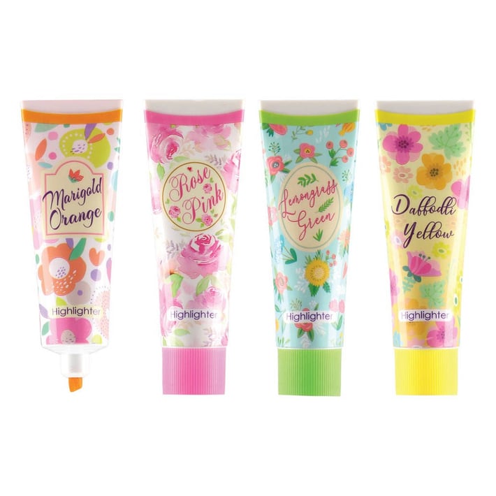 Text marker with decorative design with floral patterns in the shape of a tube.The marker has alcohol-based ink and a hairy tip that allows convenient emphasis and marking on paper.The ink dries quickly and does not spill, making it suitable for use in school, office or work with documents.